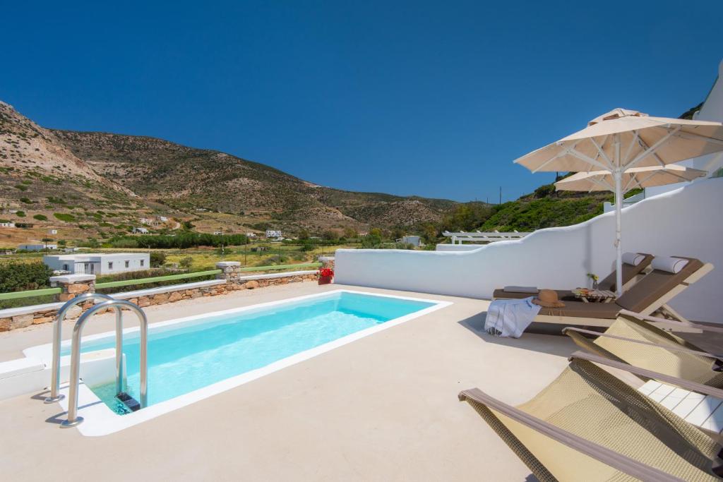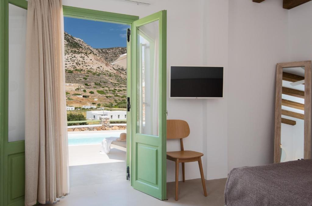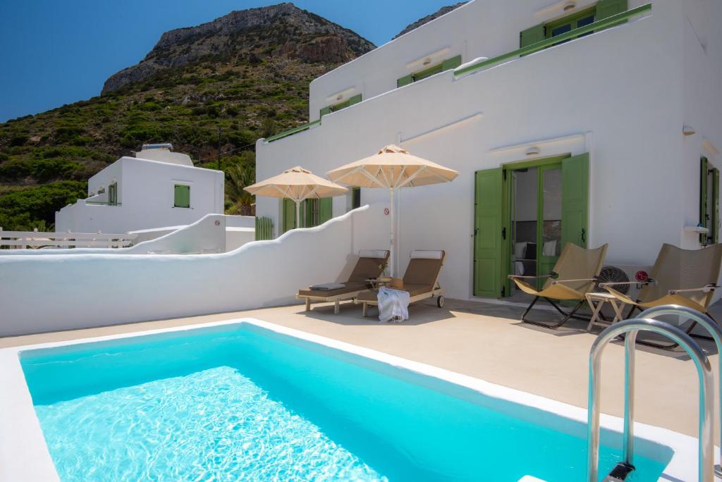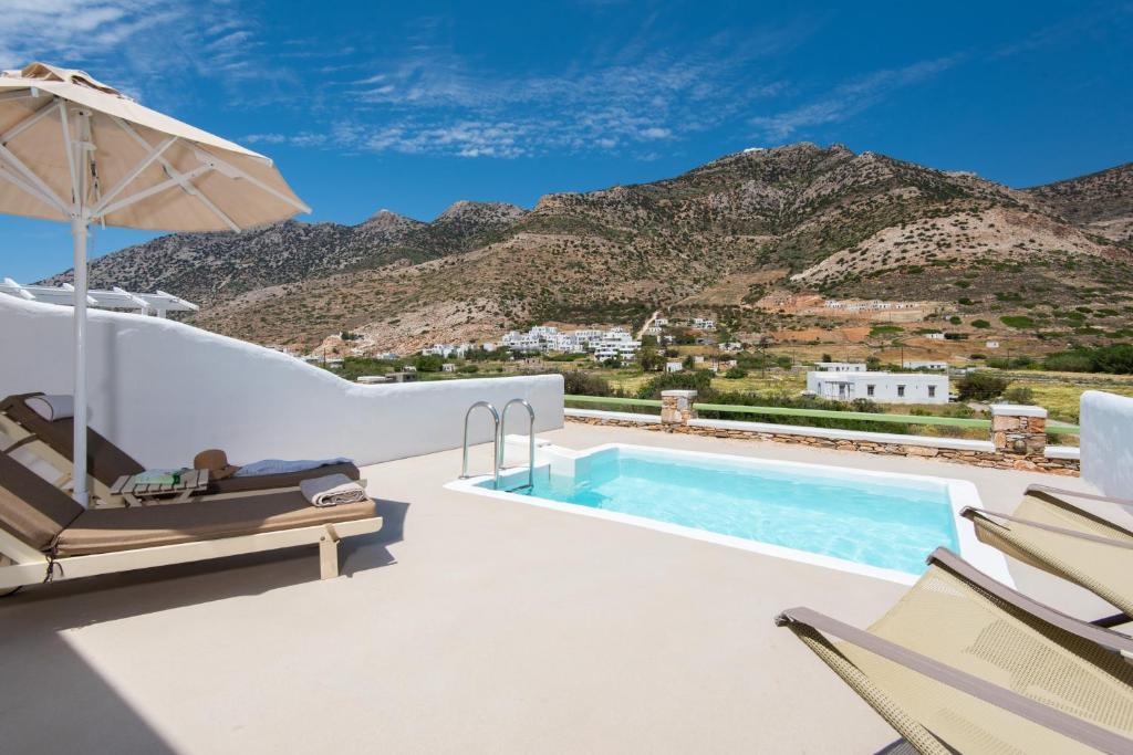 This stylish 28 m² Deluxe Suite features a private entrance, private pool, separate bedroom, cozy living area, and a terrace with stunning sea, pool, and mountain views. Enjoy modern comforts including air-conditioning, flat-screen TV, free WiFi, and a well-equipped bathroom with premium toiletries.